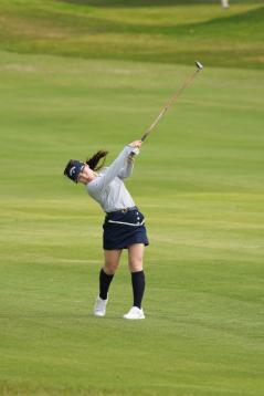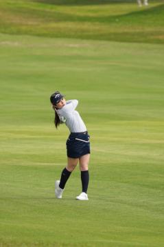 西村優菜 フェアウェイウッドスイング(斜め前方)|フォロー①