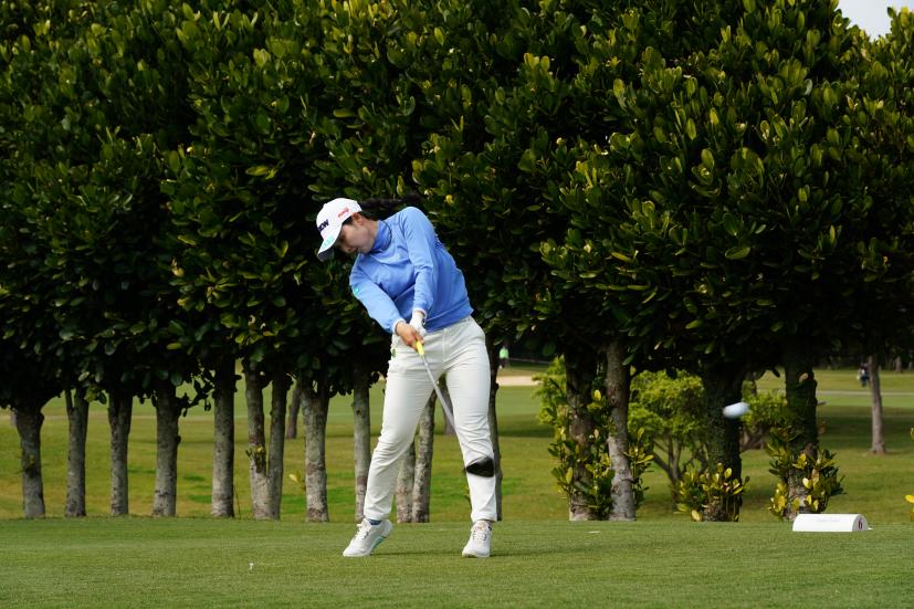 小祝さくら ドライバースイング(斜め前方)|フォロー①