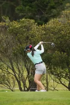 吉田優利 ドライバースイング(斜め前方)|フォロー①