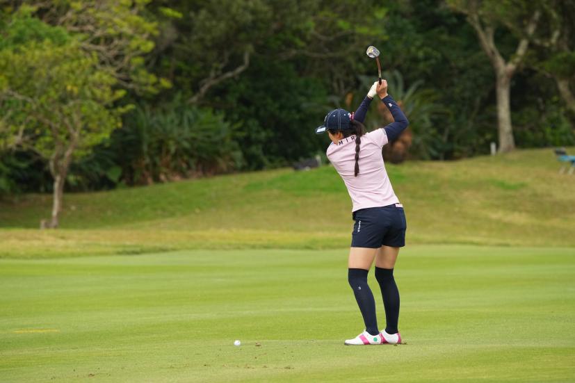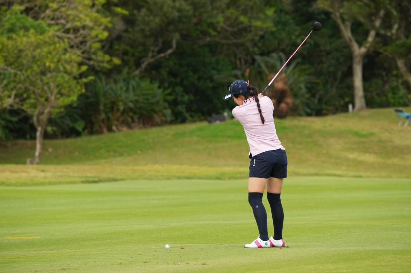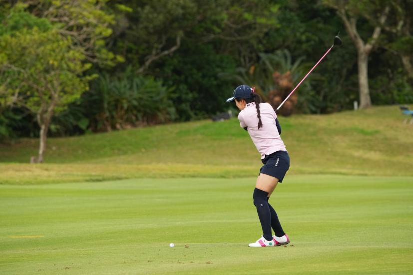 堀琴音 フェアウェイウッドスイング(斜め前方)|バックスイング①