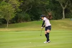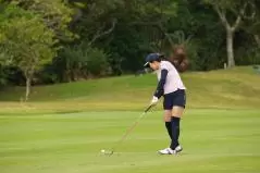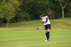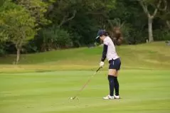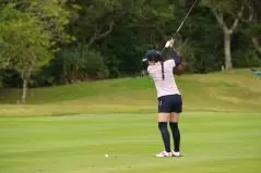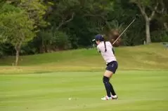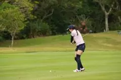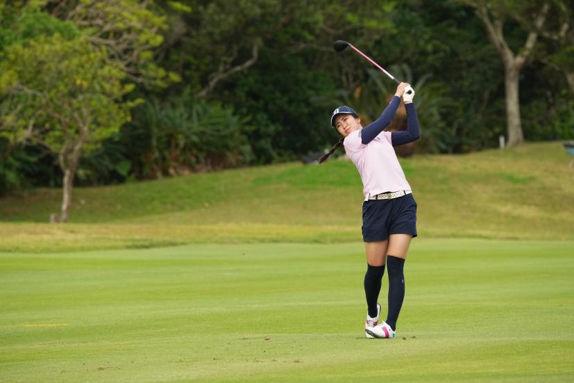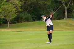 堀琴音 フェアウェイウッドスイング(斜め前方)|フォロー①