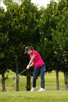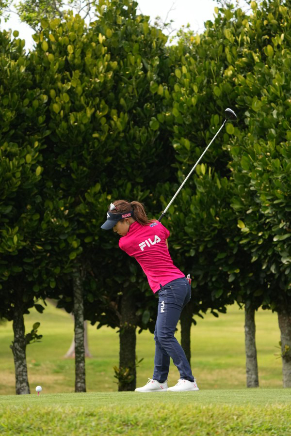 木村彩子 ドライバースイング(斜め前方)|フォロー①