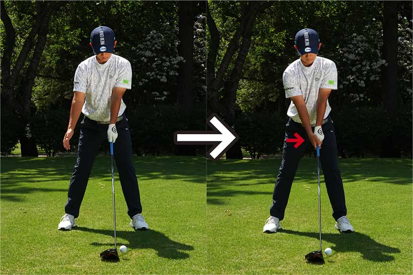 肩が開きやすい人は左手でクラブをセットするとグッド!