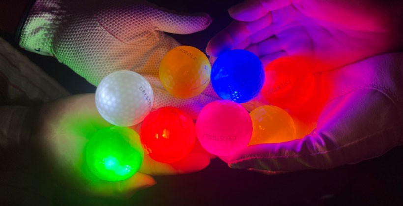 我々が今回購入した光るゴルフボールはクラブで打った瞬間から光る優れもの。大体7、8分くらい発光が続き、光が消えてもまた打てば光り始めます。