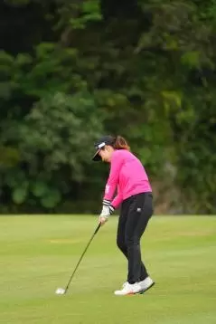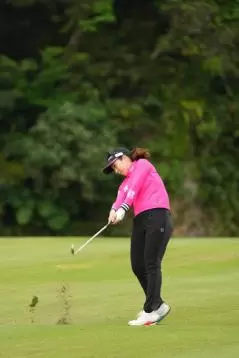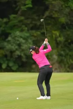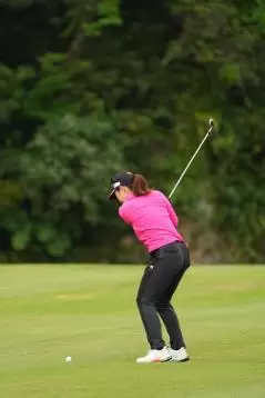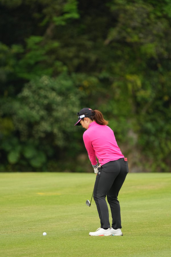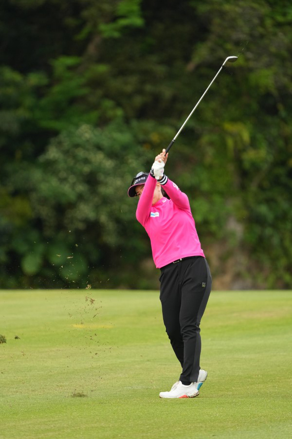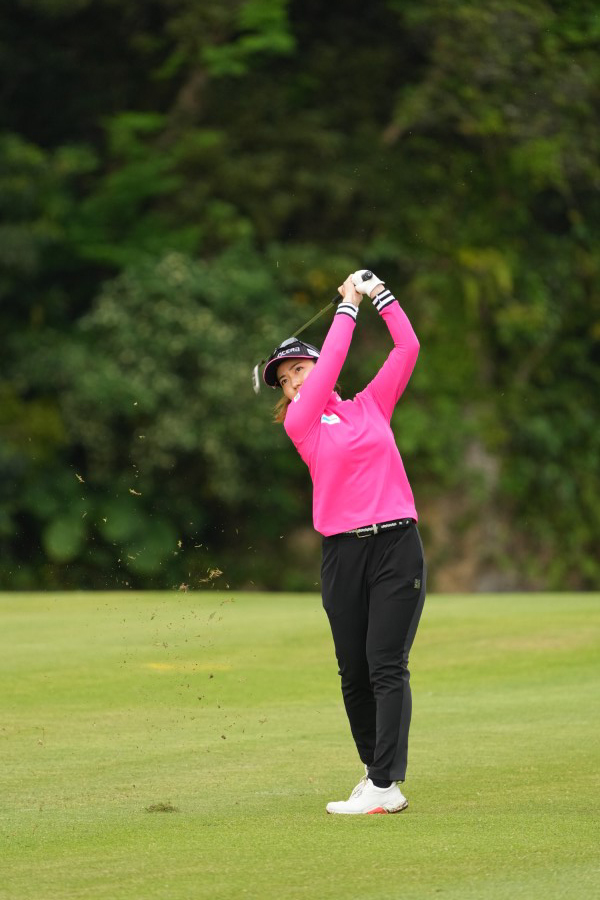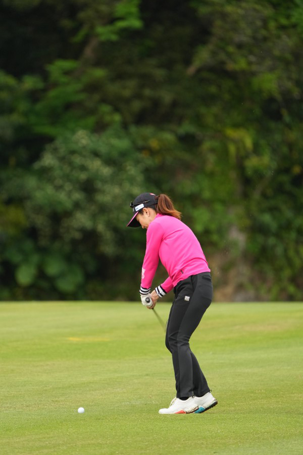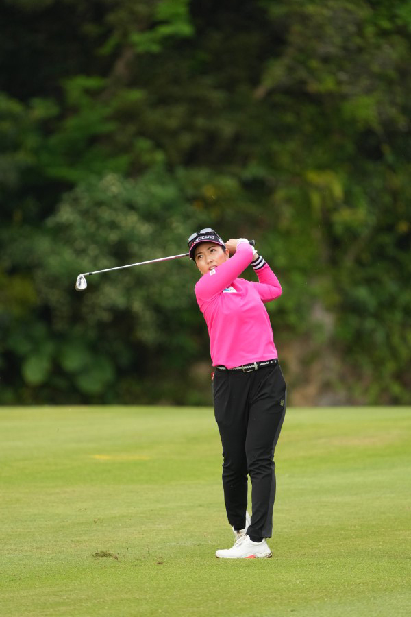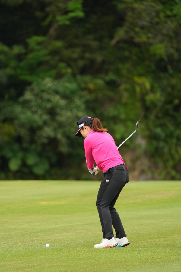 笠りつ子 アイアンスイング(斜め前方)|フォロー①