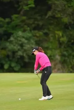笠りつ子 アイアンスイング(斜め前方)|インパクト