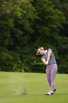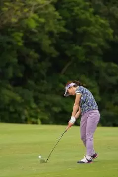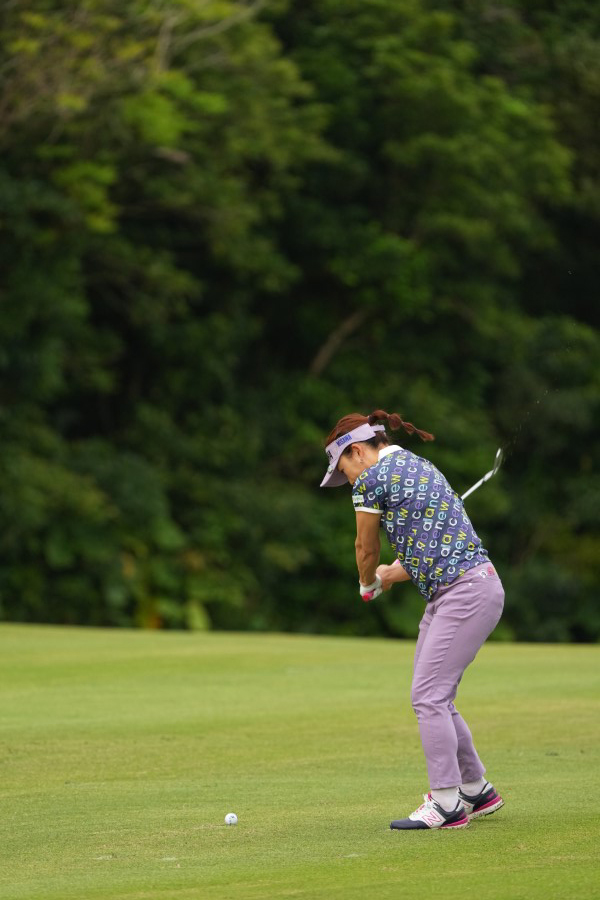 有村智恵 アイアンスイング(斜め前方)|インパクト