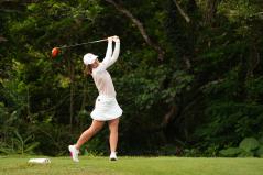 渡邉彩香 ドライバースイング(斜め前方)|フォロー①