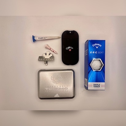 小物入れ(ティー・マーカー)、除菌スプレー、ゴルフボール