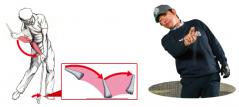 インパクトエリアでは手元とヒール側を下げることで、一気にフェースを立てることができる。