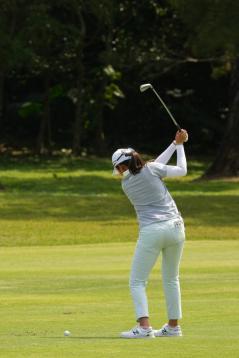 稲見萌寧 アイアンスイング(斜め前方)|インパクト