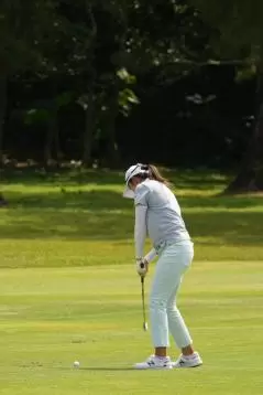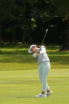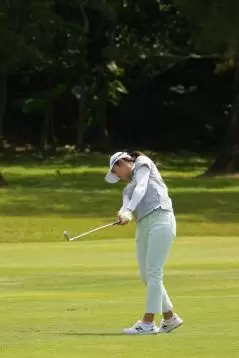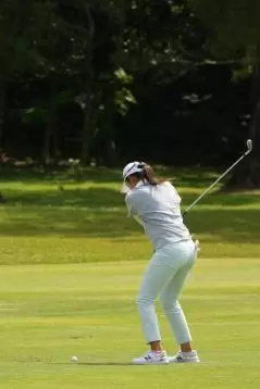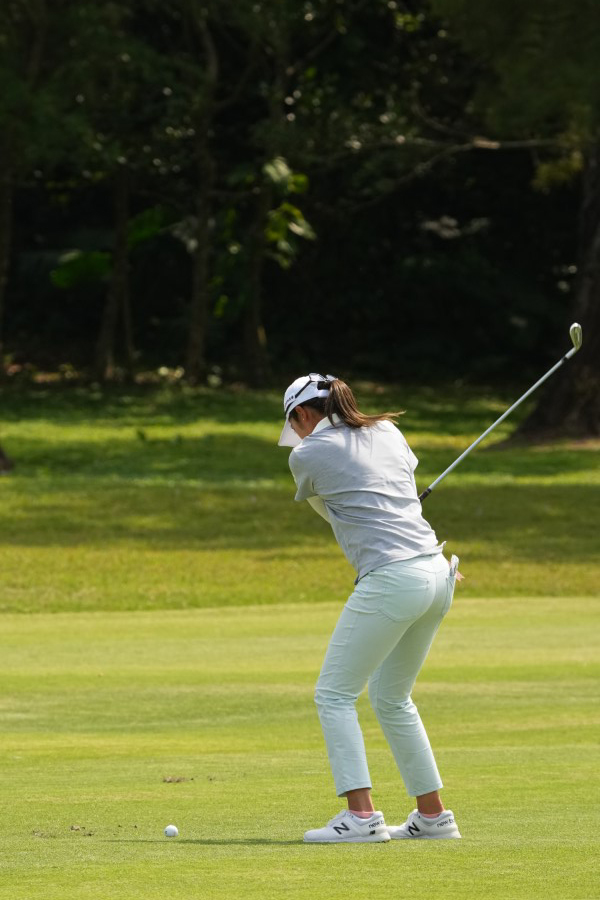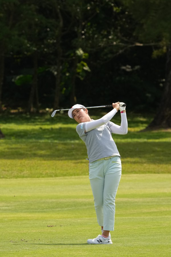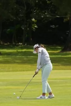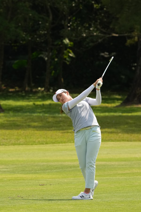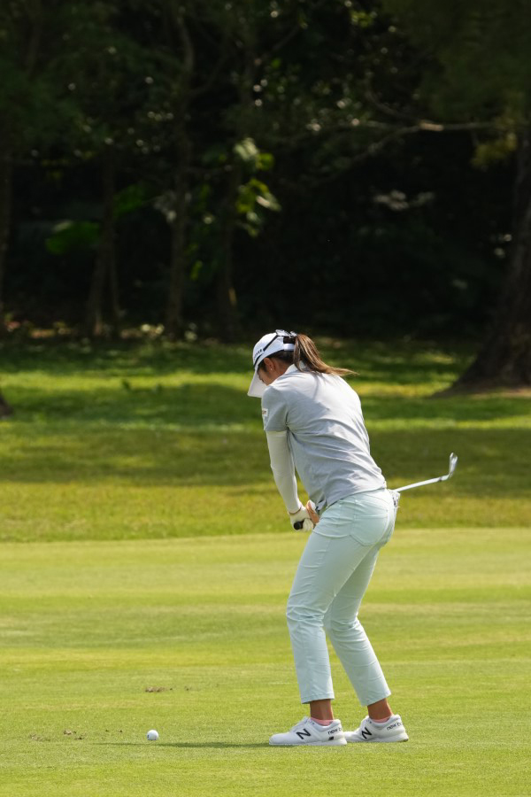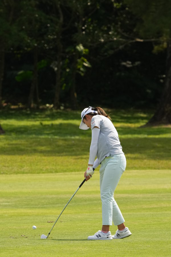 稲見萌寧 アイアンスイング(斜め前方)|インパクト