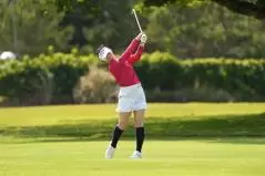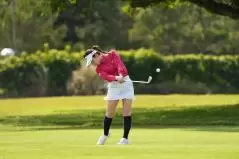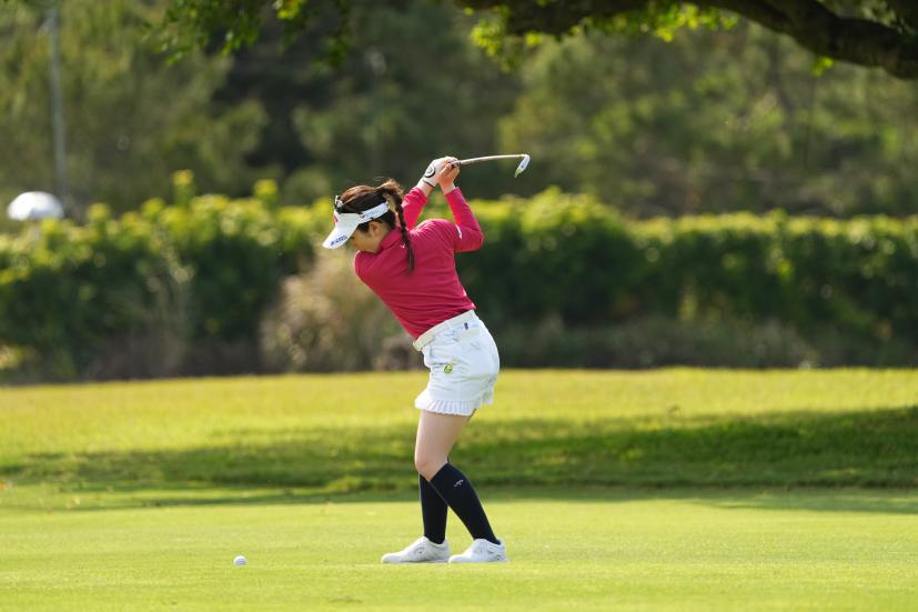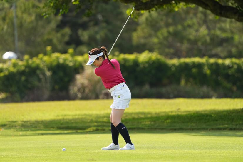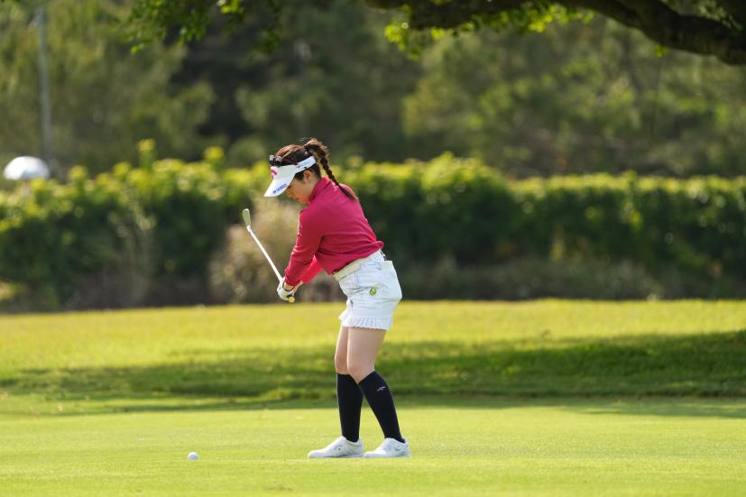 西村優菜 アイアンスイング(斜め前方)|インパクト