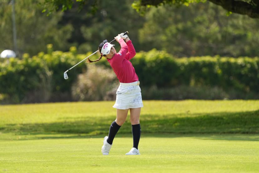 西村優菜 アイアンスイング(斜め前方)|フォロー①