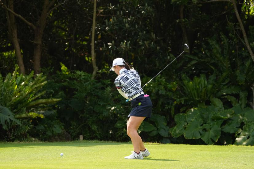 吉田優利 ドライバースイング(斜め前方)|フォロー①