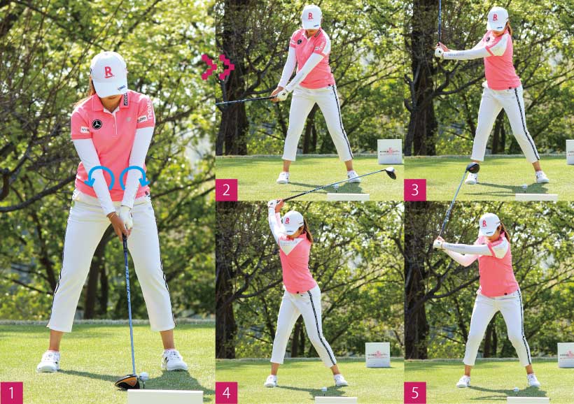 稲見選手のように右腕を体から離さないようなインパクトを作るには、アドレスで「腕をロック」させておくことが必要。ただし、腕にギュッと力を入れてしまうのはNG!