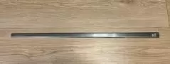 方向性を良くするために自宅で使っているのが、ザ・レールです。写真をご覧いただくとわかるのですが、長さ1mの金属のレールです。平らな部分の幅は、右側の広い方が2.5cm、左側の狭い方が1.5cmになっています。ボールをまっすぐ打つことができないと、ボールがレールから落ちてしまうという単純な練習器具です。