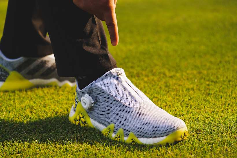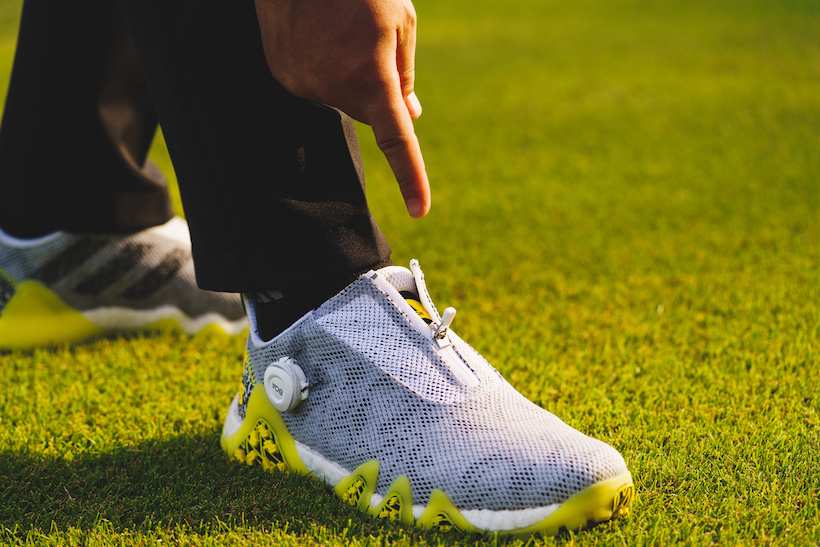 さて、本題に入ろう。アディダスゴルフが展開するゴルフシューズの中でも「コードカオス」は、快適性において他モデルに対して高い優位性を誇るシリーズ。正直、「コードカオス」ほどではないが、十分に快適な履き心地を備え、優れたグリップ力を発揮してくれるアッパーにジッパーがデザインされた「コードカオス22 BOA」