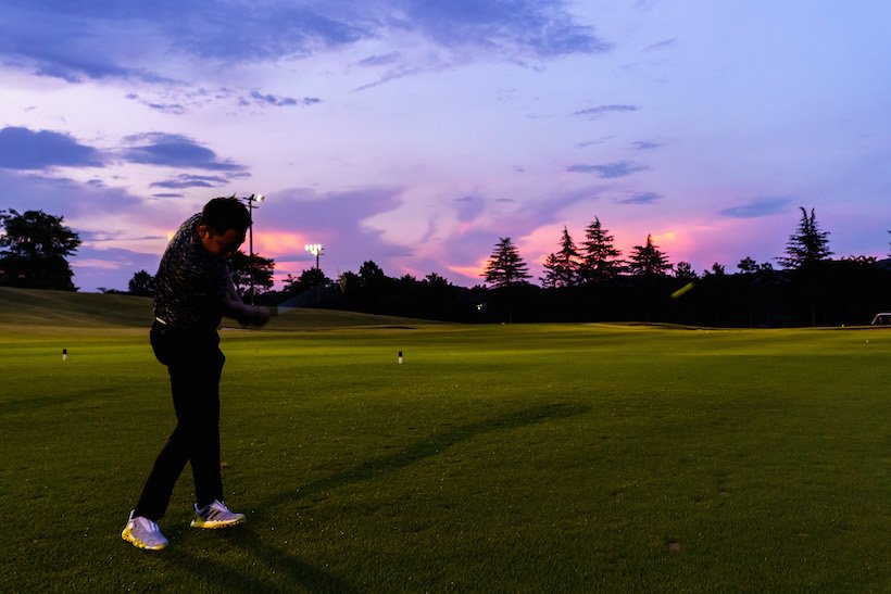 試し履きラウンドは大厚木カントリークラブ・桜コースでのナイターゴルフ! 猛暑が続く中だったので、アディダスゴルフの気配りに『涼しくラウンド取材できるかも』とうれしい気持ちとともにコースへ。