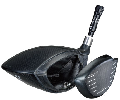 ヘッド本体をすべてカーボン化することで、従来の倍となる40gのウェイトをヘッド内部後方に装着。高慣性モーメント化、低重心化、重心角の最適化に加え、クラウンとソールの剛性を最適化することで、カップ構造のチタンフェースの反発に加え、カーボン本体の反発性能もプラス。しかもヘッドは軽量化されている。