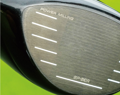 フェースセンターとトゥ側ヒール側でミーリングを変化させることで、オフセンターヒット時の直進性UP。