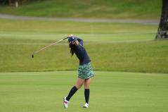 堀琴音 フェアウェイウッドスイング(斜め前方)|フォロー①