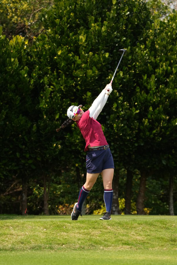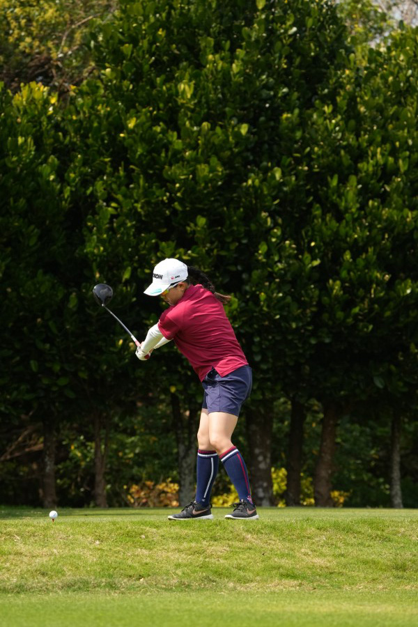 勝みなみ ドライバースイング(斜め前方)|フォロー①