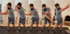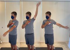 山本 まずはさっきやったように、手を頭の上まで上げる動きです。片手ずつでいいので、しっかりと鎖骨の付け根から上げる意識でやってください。もう一つは、腕をぐるぐると後ろに回す動きです。もちろんこれも鎖骨の付け根から動いてくださいね。