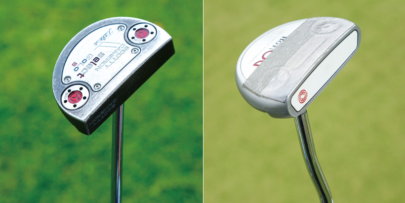 現在はヒール側にトラスネックがついたパターを使っている高橋だが、練習日にはセンター部分にネックがついたモデルもよくテストしている。