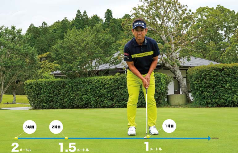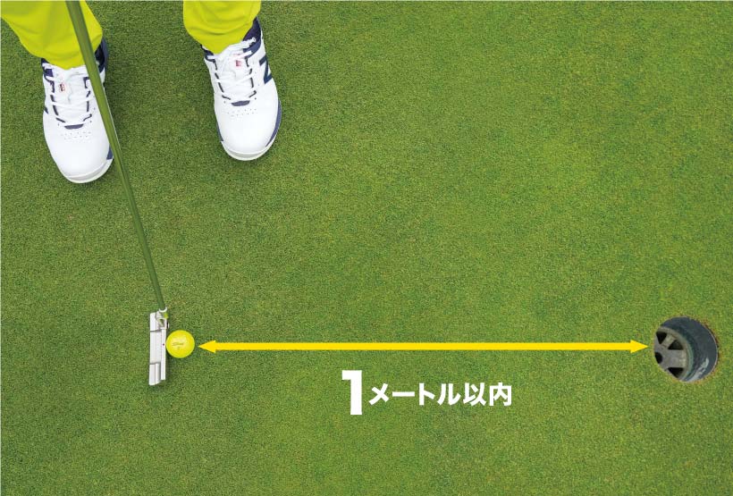 「この距離なら入る」という自信がついたら、70、80センチ、そして1メートルとカップまでの距離を少しずつ長くします。