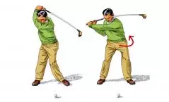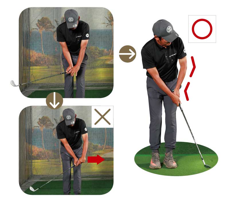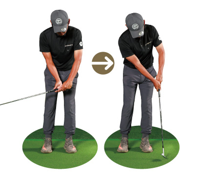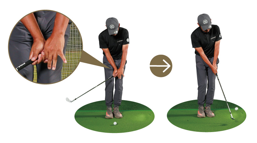 左手3本指をキッチリ締めて支点にして、右手でヘッドを振り上げると軌道が安定しない。パンチを入れようと叩くほど、ザックリやトップのミスにつながる。