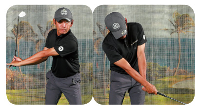 「最も効率よくパンチを入れられるたぐり動作は、個人差があります。振り幅を徐々に広げていく際、アドレスから切り返しまでの左手の緩め方、ダウンでの締め方は、いろいろなパターンを試してみてください」