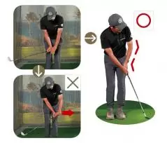 ダウンで左手3本指を締めても、グリップエンドを左に引っ張ってしまうとヘッドはリリースできない。