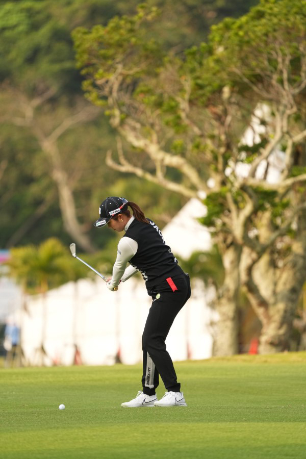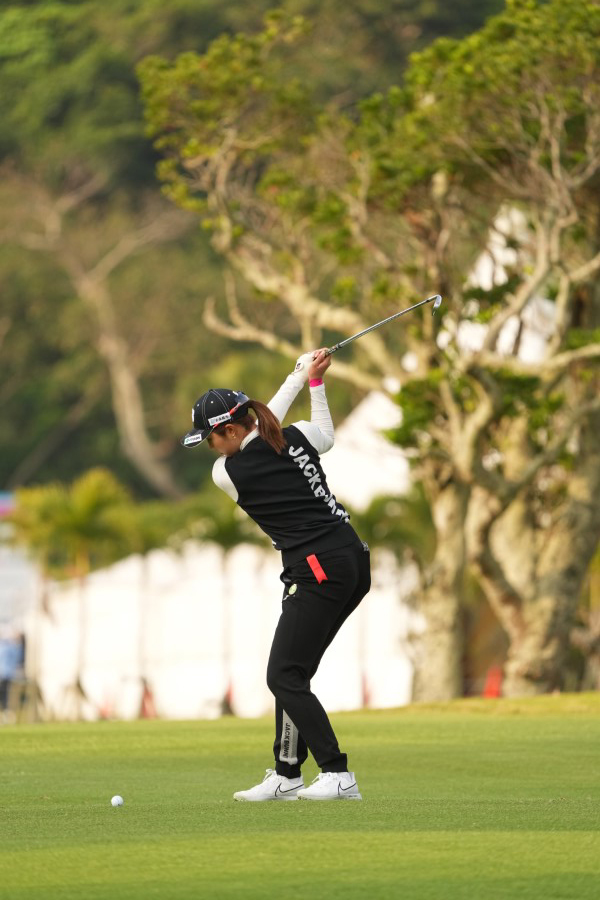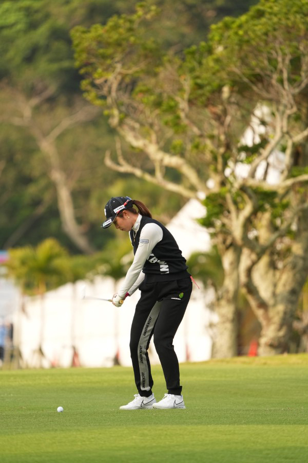 大里桃子のアイアンスイング(斜め前方)|インパクト