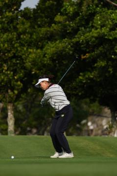 青木瀬令奈のユーティリティスイング(斜め前方)|フォロー①