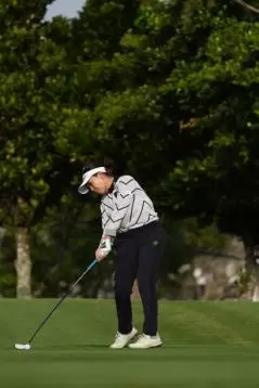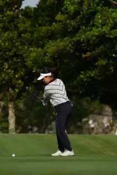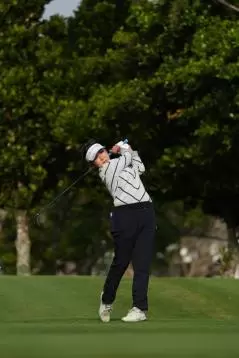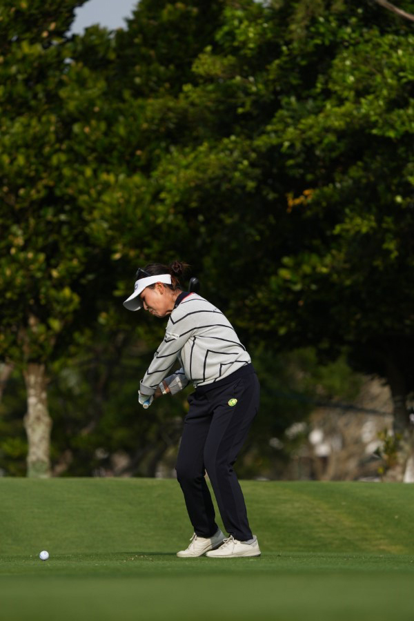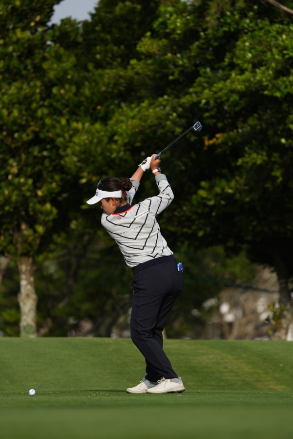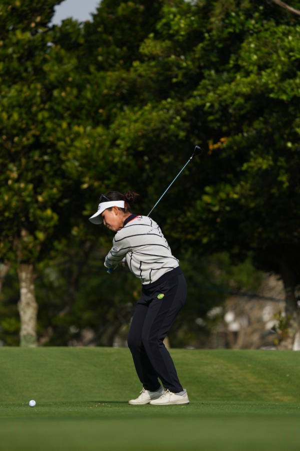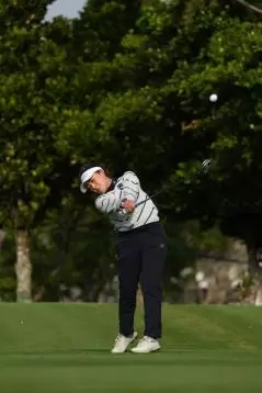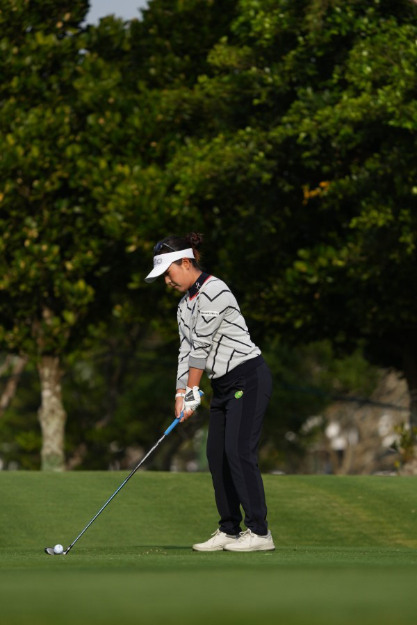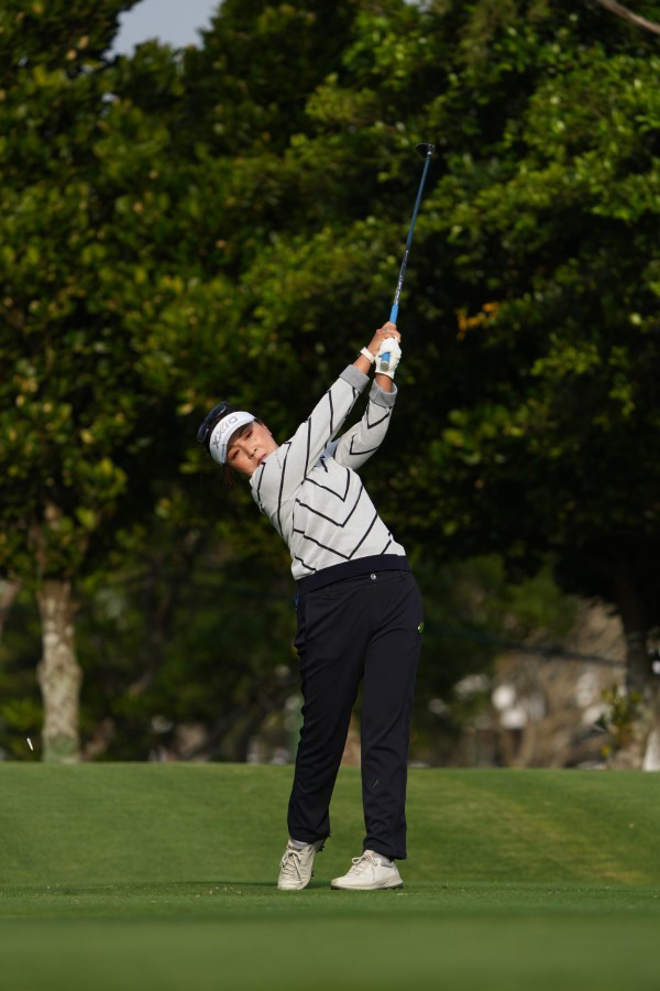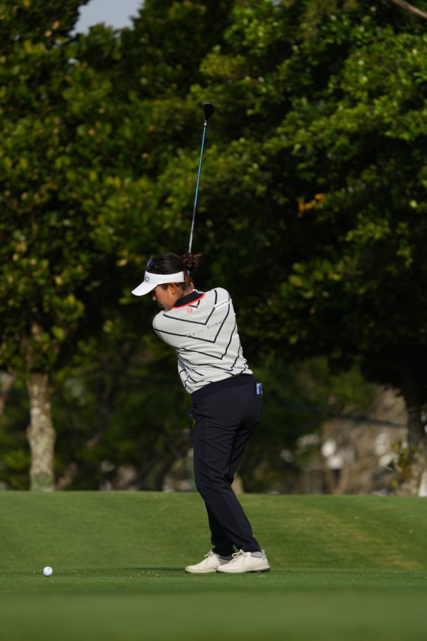 青木瀬令奈のユーティリティスイング(斜め前方)|フォロー①
