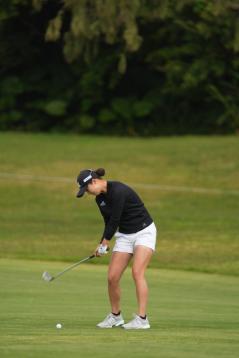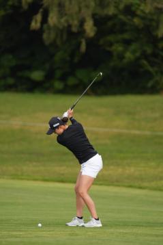 森田遥のウェッジスイング(斜め前方)連続写真連続写真。メルセデスランキング16位(第49回ミヤギテレビ杯ダンロップ女子オープンゴルフトーナメント終了時点)。