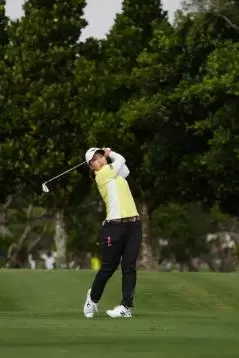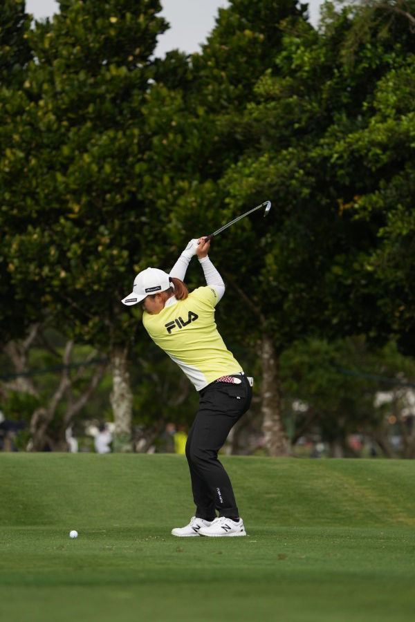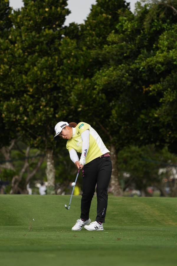 西郷真央のアイアンスイング(斜め前方)|フォロー①