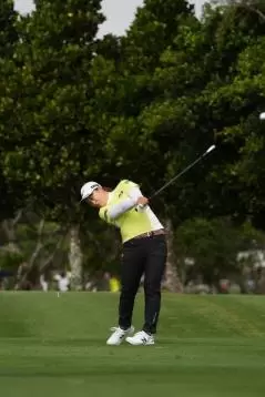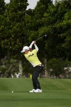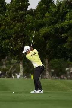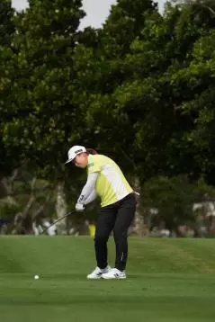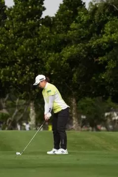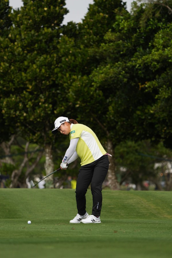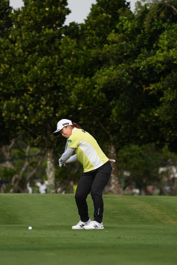 西郷真央のアイアンスイング(斜め前方)|インパクト