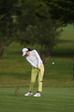 稲見萌寧のウェッジスイング(斜め前方)|インパクト