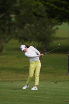稲見萌寧のウェッジスイング(斜め前方)|フォロー①