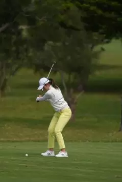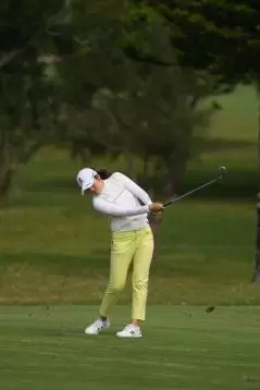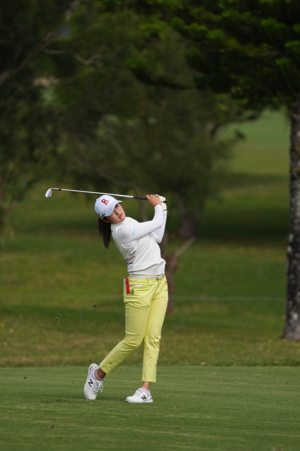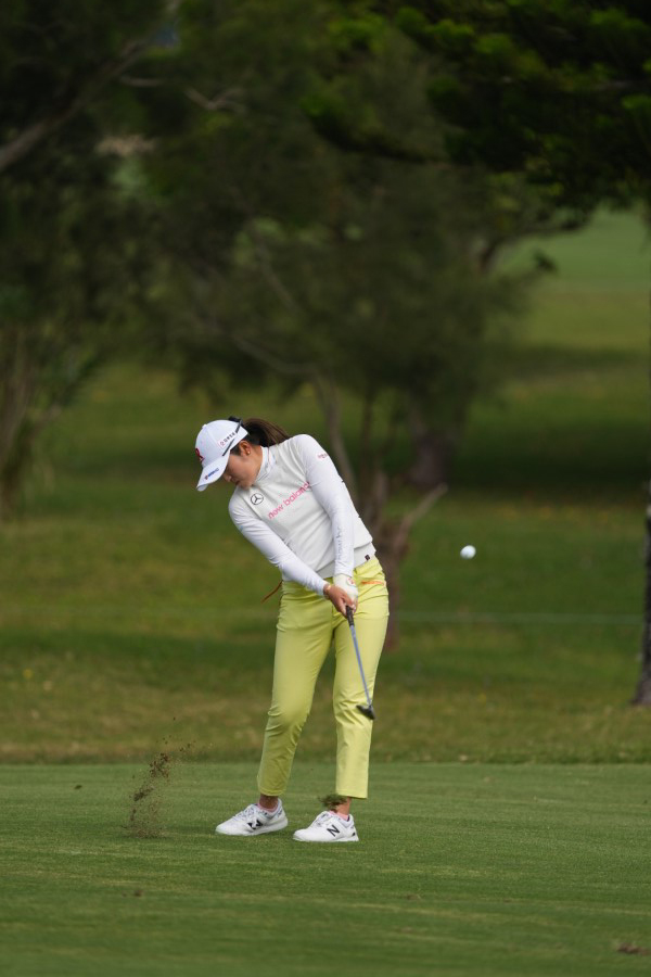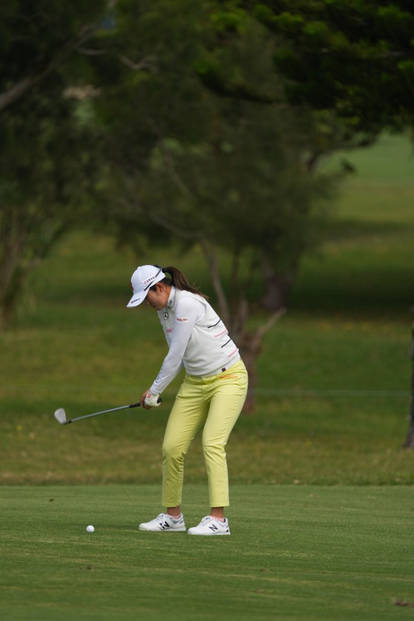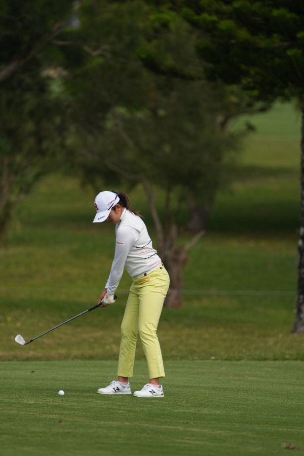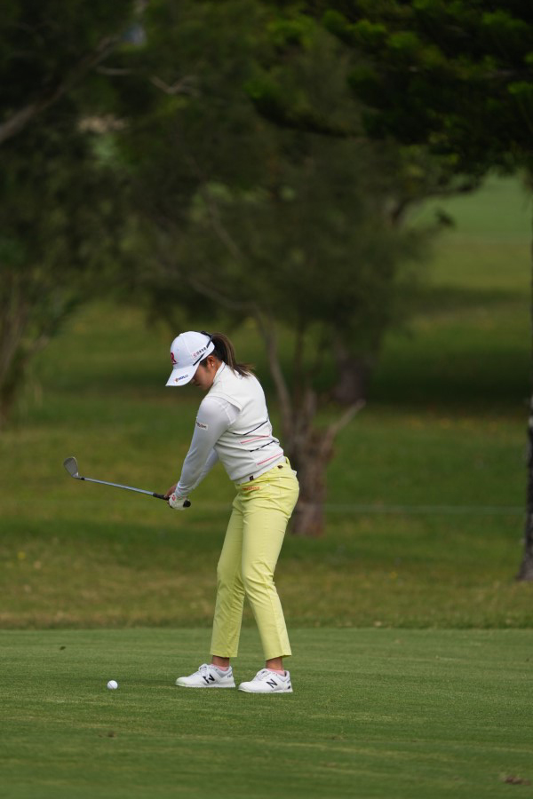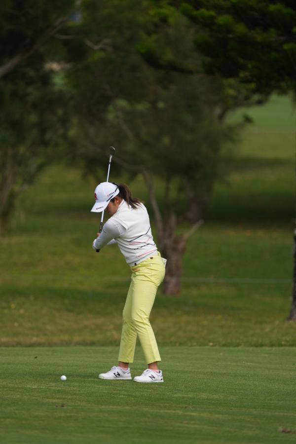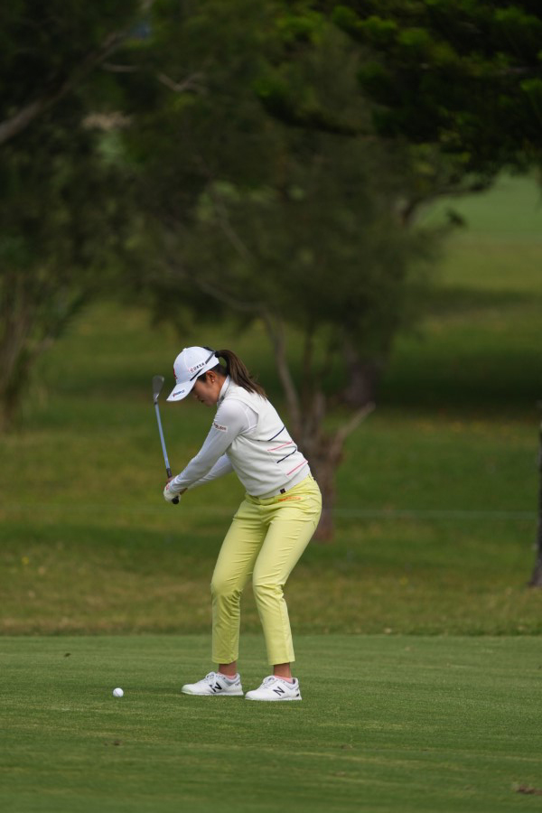 稲見萌寧のウェッジスイング(斜め前方)|インパクト