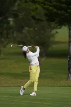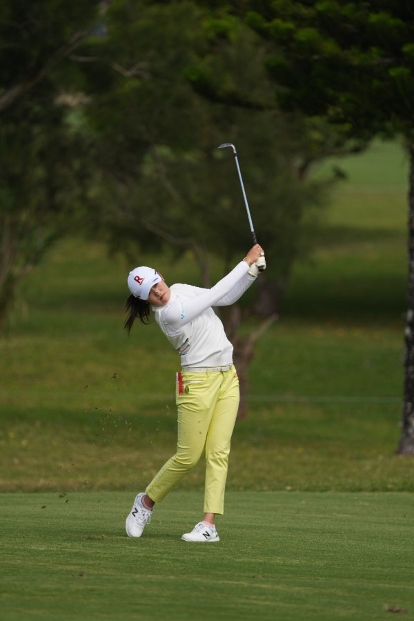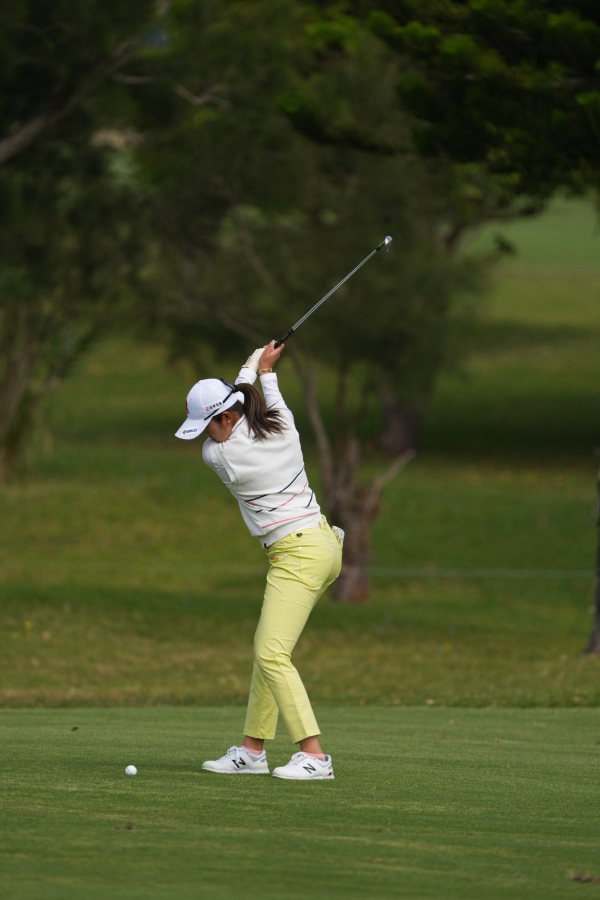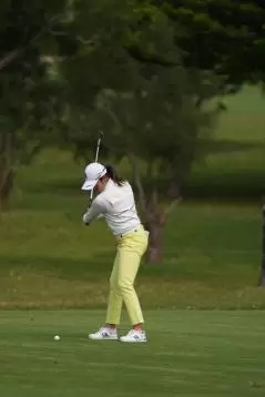 稲見萌寧のウェッジスイング(斜め前方)|フォロー①