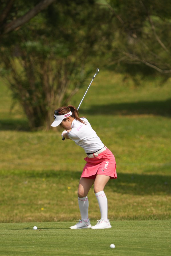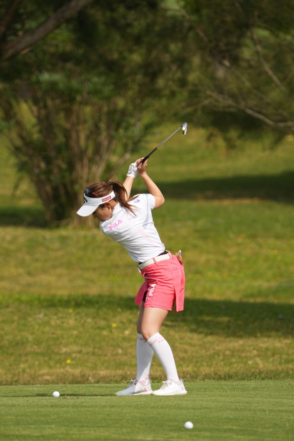 木村彩子のアイアンスイング(斜め前方)|フォロー①