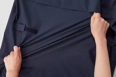 このレインワンピースは、高機能防水性と透湿性に優れており、雨の侵入を防ぎつつ、内部の蒸れを外へ逃がしてくれます。また通気性を確保するベンチレーションがあったり、袖が着脱可能だったりと、温度変化への対応にも優れています。