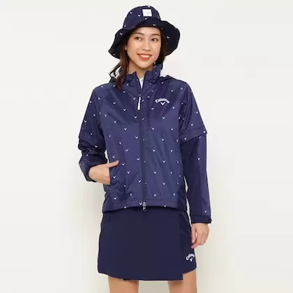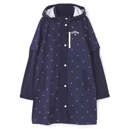 着脱できる袖、収納できるフードなど状況に合わせて快適にプレーができます。同シリーズのレッグカバーを合わせて雨のオシャレを楽しむのもおすすめです。