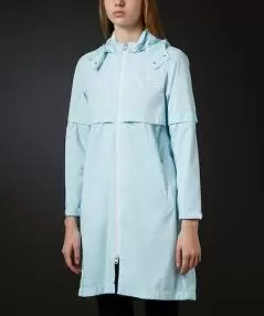 “ウエストから切り返したフレアラインが美しい”レインワンピース。雨の侵入を防ぐ防水性と、ムレを逃がす透湿性に優れたTECHNO BRANEを加えた高機能アイテムです。バックスタイルのセンターに大胆にあしらったロゴが、アクセントとして際立っています。