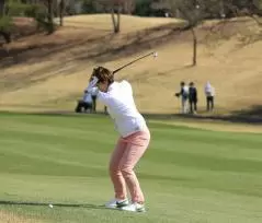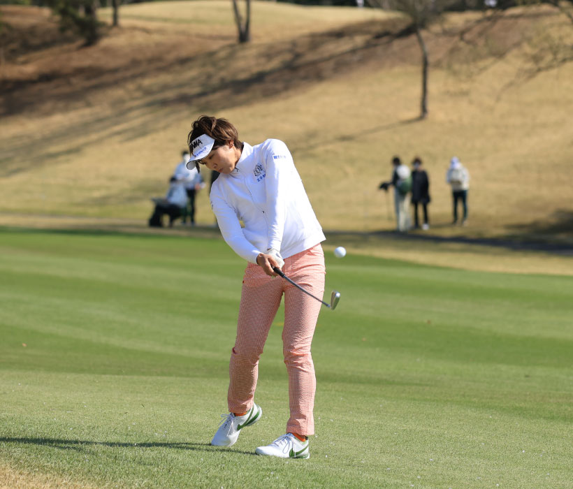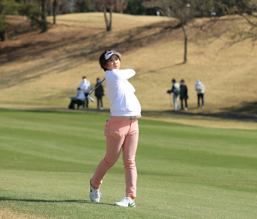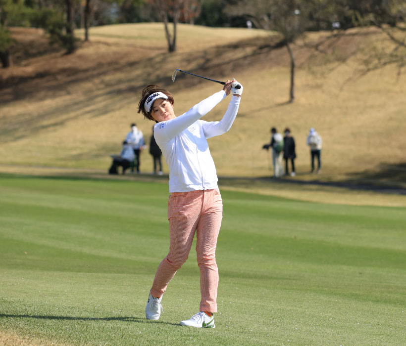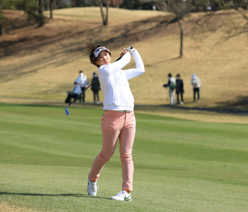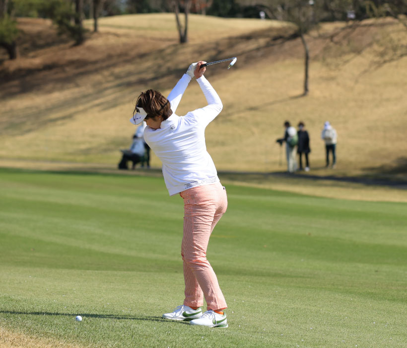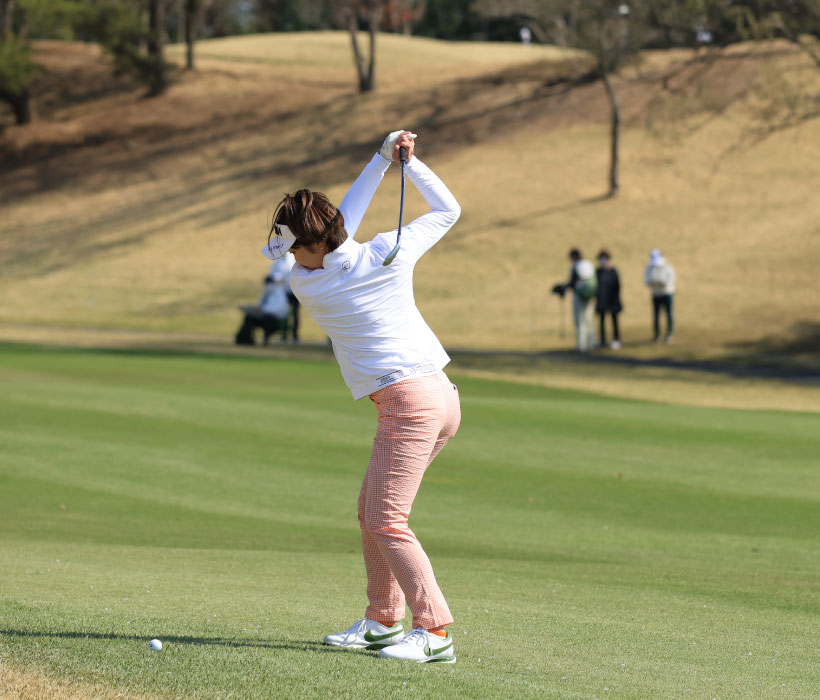 葭葉ルミのアイアンスイング(斜め前方)|フォロー①