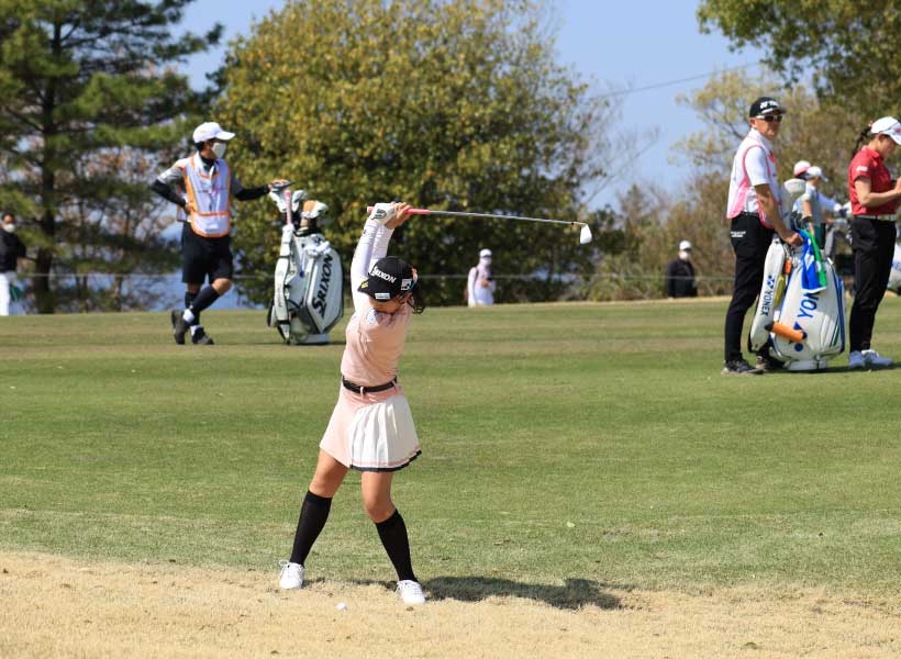 菅沼菜々のアイアンスイング(正面)|ダウンスイング①