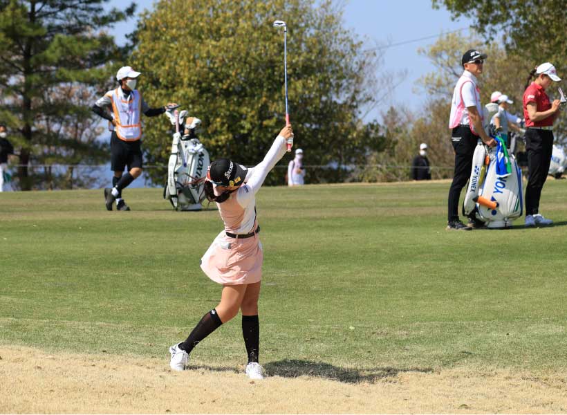 菅沼菜々のアイアンスイング(正面)|ダウンスイング③